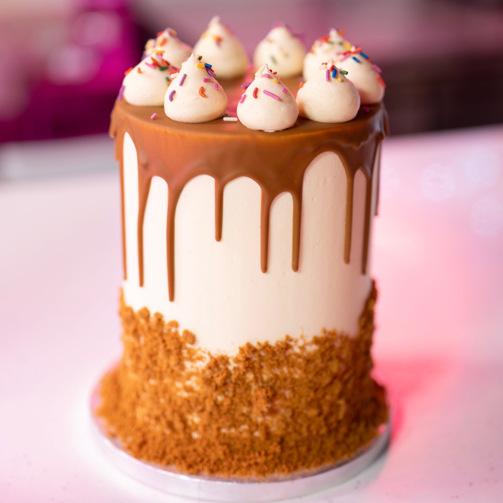 Vanilla sponge filled with layers of biscoff & buttercream.